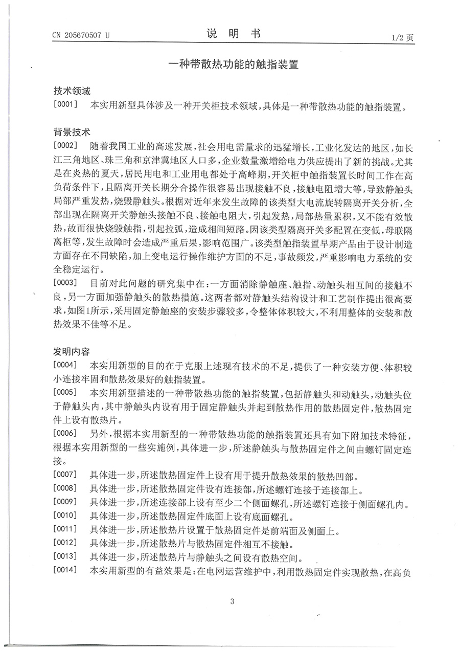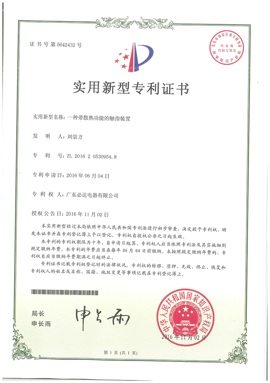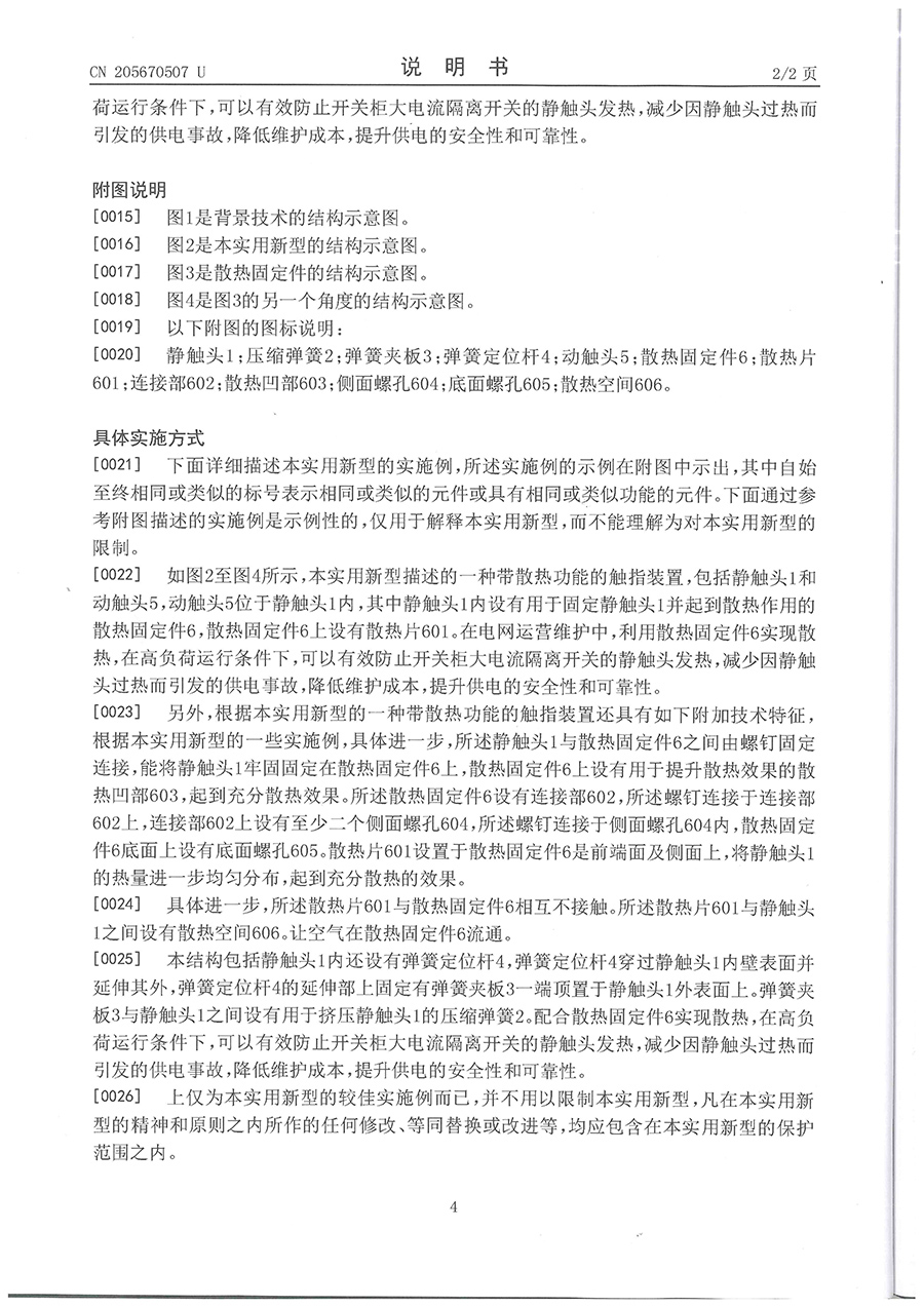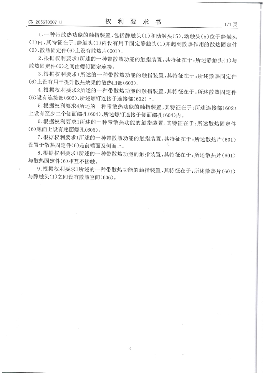 32.一种带散热功能的触指装置-实用新型专利证书(ZL201620530954.8)2016.06.04
