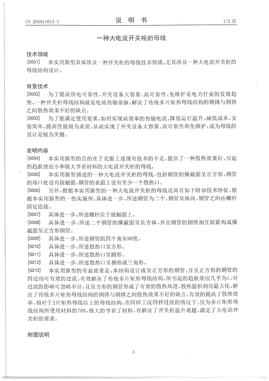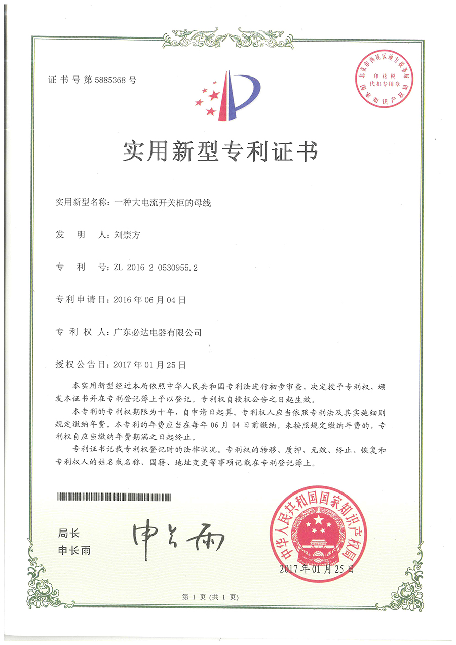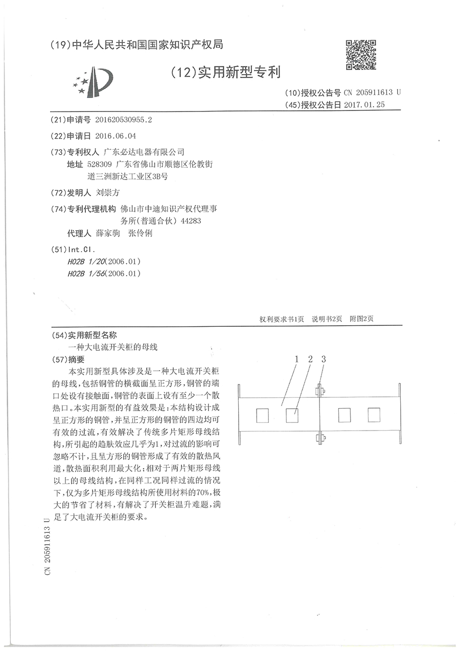 33.一种大电流开关的母线-实用新型专利证书(ZL201620530955.2)2016.06.04
